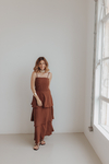 Um vestido que une o caimento impecável do tecido marrant ao charme da modelagem em camadas. A parte superior conta com bojo estruturado e alças finas fixas que realçam o colo de forma delicada. A saia em camadas acrescenta fluidez e movimento ao look, ideal para quem ama peças femininas e confortáveis.